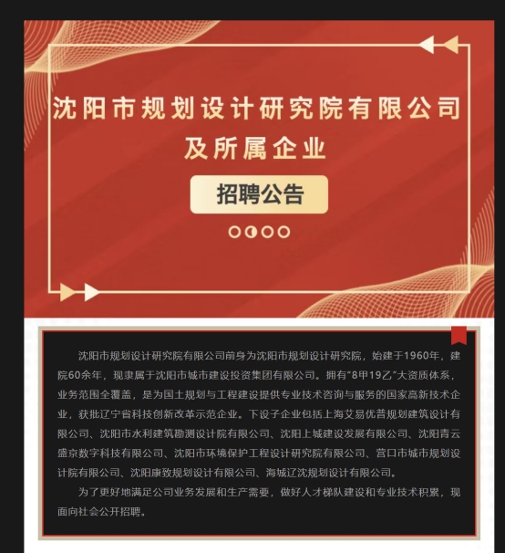 【招聘】沈阳市规划设计研究院有限公司2026届毕业生招聘