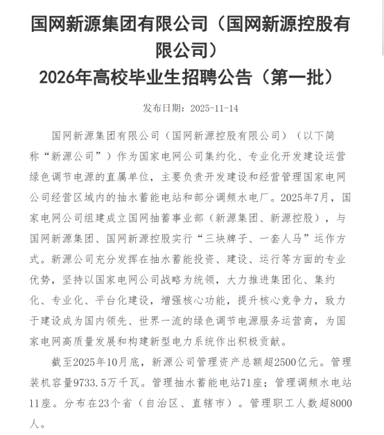 【招聘】国网新源集团有限公司2026届毕业生招聘