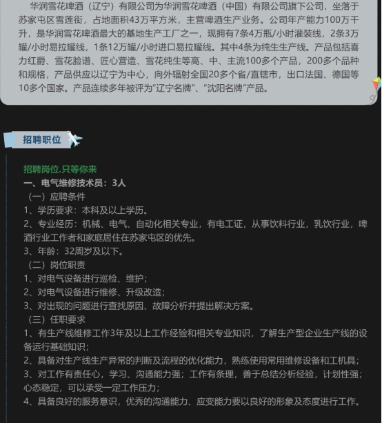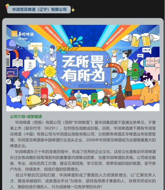 【招聘】华润雪花啤酒有限公司2026届毕业生招聘