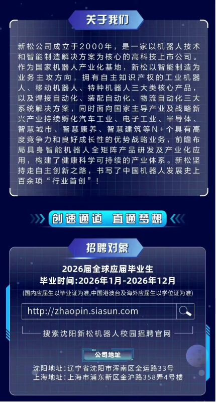 【招聘】沈阳新松机器人2026年毕业生招聘