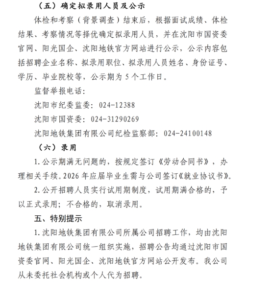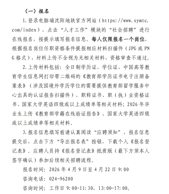 【招聘】沈阳地铁集团有限公司2026年毕业生招聘
