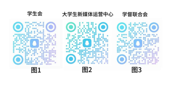 1.扫描图1(团委学生会)、图2(大学生新媒体运营中心)、图3(学督联合会)二维码,加入QQ报名群,方便相关信息传达;
