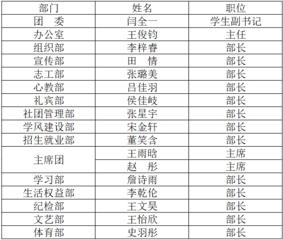 经个人自主申报,“信息与控制学院团委学生会换届竞选大会 ”公开竞选 演讲、学院综合考察、报送信息与控制学院团委讨论通过,现将信息与控制学院2025届团委学生会换届竞选结果公示如下: