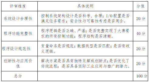 参赛同学需在指定地点及电脑上完成本次比赛作品的制作,并在规定时间内提交作品到班级作业处。作品需包含PLC源程序(.ACD)文件、PLC程序PDF文件、演示视频(包含作品实现功能讲解、优化及创新点,时长不超过5分钟);文件命名格式:班级_学号_姓名_作品名称