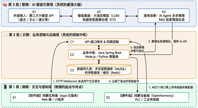 所有参赛作品必须遵循以下 “端(感知与交互)-云(业务中枢)-智(AI大脑)”三位一体 的技术架构标准。达不到底线要求的作品,无法进入复赛与决赛阶段。